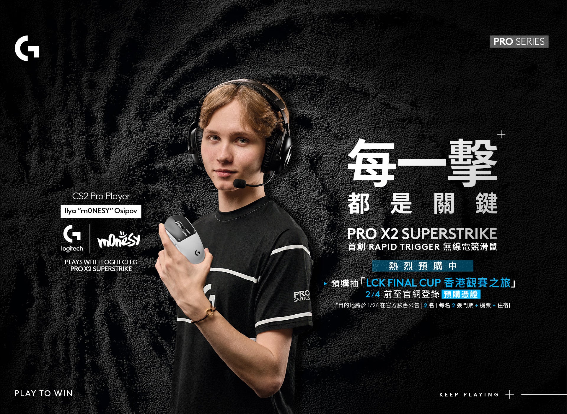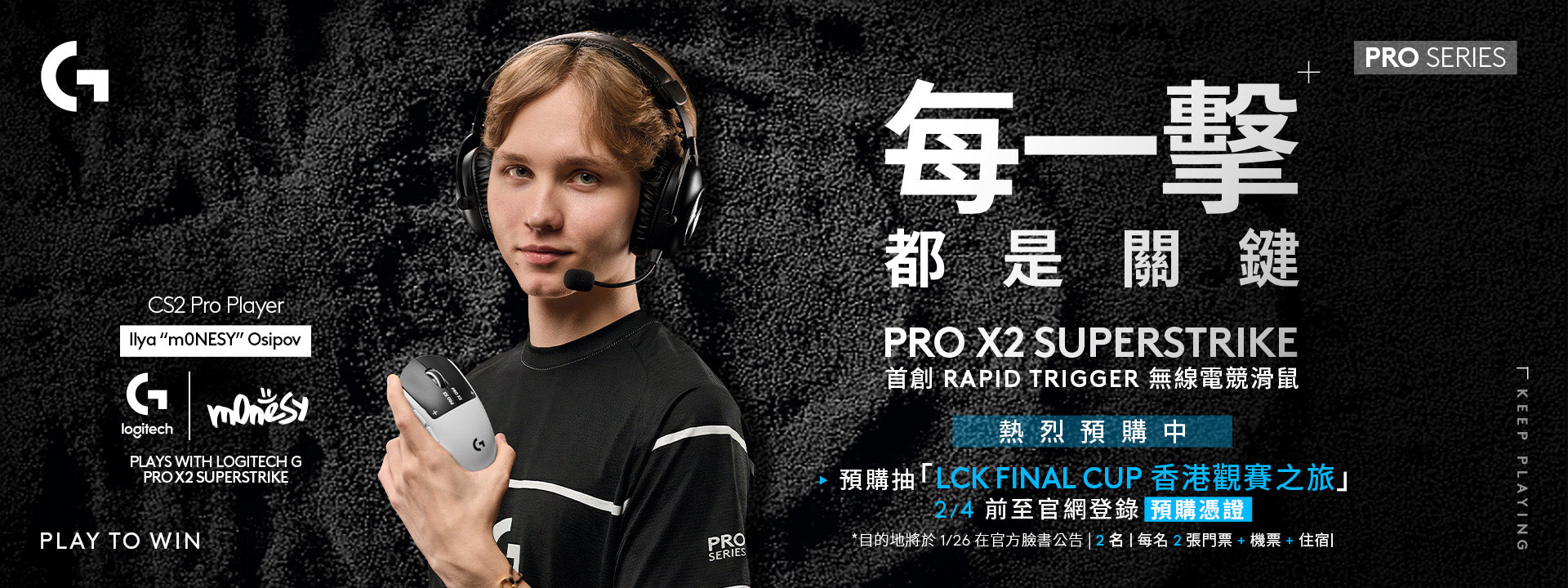 【快速觸發、可調回饋】PRO X 2 SUPERSTRIKE 無線輕量電競滑鼠